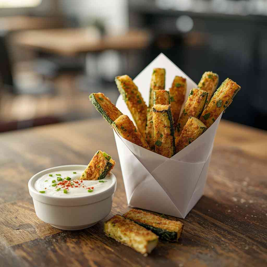 - Step 4: Bake Until Crispy : Preheat oven to 425°F (220°C). Lightly spray zucchini fries with olive oil or cooking spray. Bake for 22–25 minutes, flipping halfway through, until golden and crisp. For extra crunch, broil for 1–2 minutes at the end.