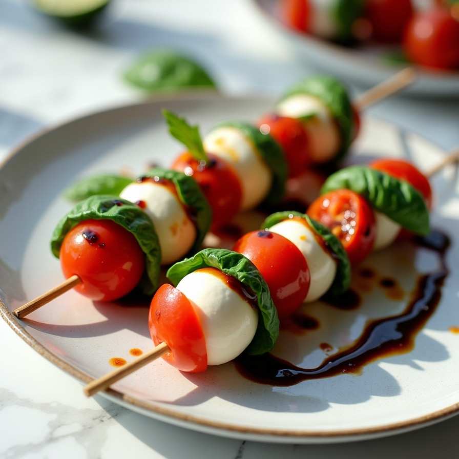 I love this recipe because it is simple, fresh, and versatile. The combination of ripe tomatoes, soft mozzarella, and aromatic basil is a classic that never disappoints. The balsamic glaze adds a sweet tang that elevates the flavors, while the skewer presentation makes it easy to serve and enjoy. It’s quick to assemble, visually stunning, and perfect for entertaining or a light, refreshing snack.