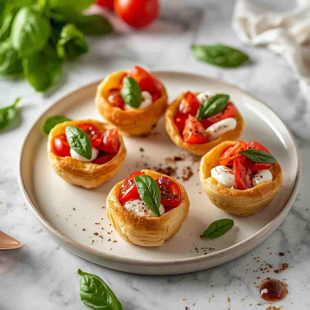 Yes! Pre-made puff pastry shells work perfectly. Just fill the centers with mozzarella and tomato before baking.