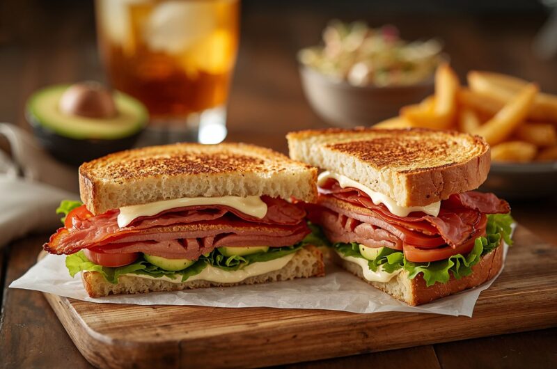 The Classic BLT Club Sandwich with Avocado is a timeless creation that combines crispy bacon, juicy ripe tomatoes, crisp lettuce, creamy avocado, and tender slices of turkey or chicken layered between perfectly toasted bread. The addition of avocado adds a velvety richness that takes this already beloved sandwich to the next level. It’s hearty, satisfying, and can serve as either a quick lunch, a light dinner, or even an impressive meal for guests.