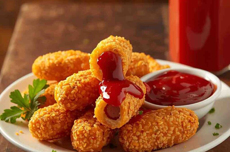 Corn Dog Bites with Ketchup are a fun, bite-sized twist on the classic fairground favorite. Mini hot dogs are coated in a slightly sweet, golden cornmeal batter and fried or baked to crispy perfection. Served with ketchup for dipping, these corn dog bites are perfect for parties, game days, or casual snacking. They are easy to make, visually appealing, and loved by both children and adults.