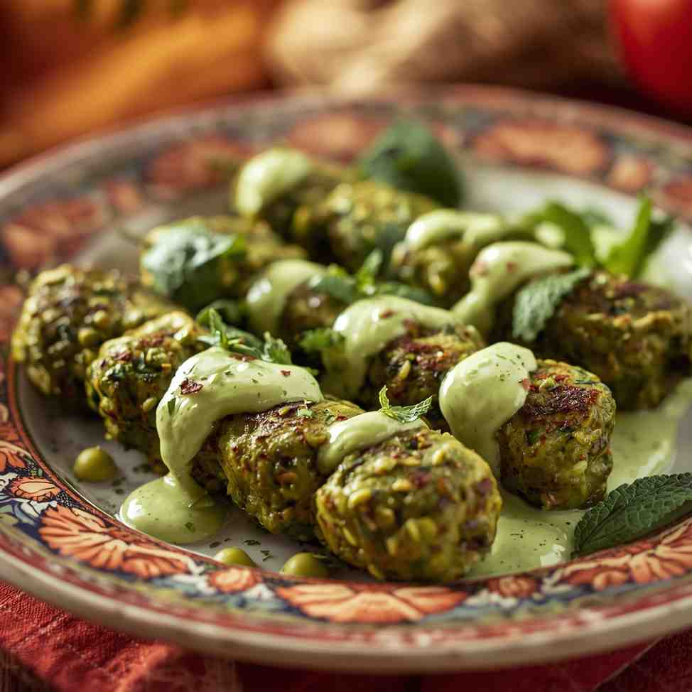 Paired with a cool mint yogurt sauce, they offer a refreshing balance to the earthy flavors of the kababs. Low in fat yet high in nutrients, this recipe is ideal for those looking for a healthy and indulgent snack. Its vibrant green color and aromatic flavors make it a crowd-pleaser at any gathering.
