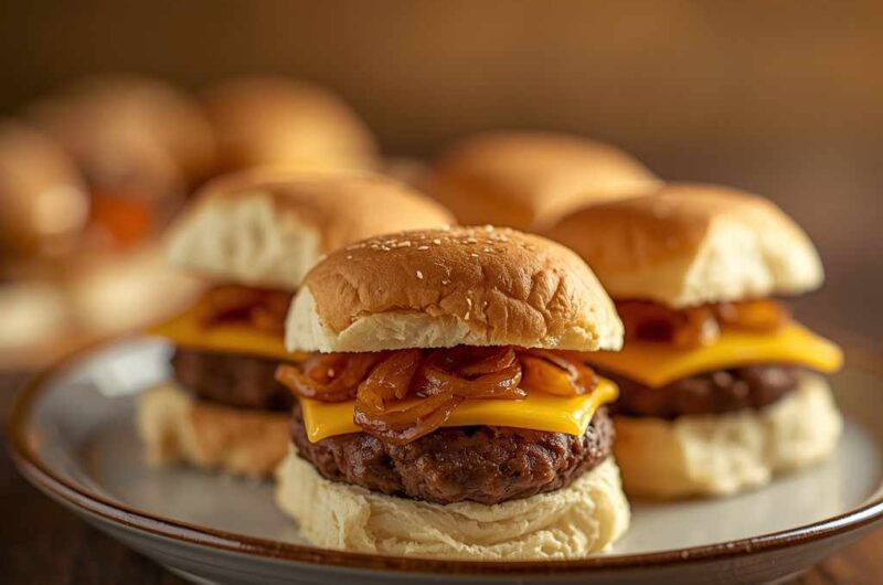 Mini Sliders with Caramelized Onions and Cheese are the ultimate bite-sized indulgence, perfect for parties, game days, or casual dinners. Juicy, flavorful mini beef patties are topped with sweet, caramelized onions and melted cheese, all nestled between soft slider buns. These sliders are satisfying yet easy to eat, making them ideal for gatherings or family meals.