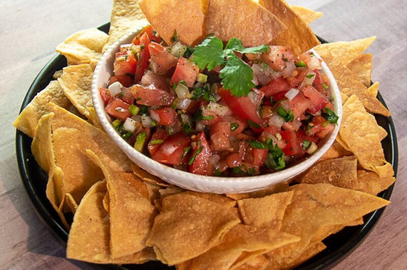 - Transfer Pico de Gallo to a serving bowl and place chips around it. Serve immediately for best freshness.