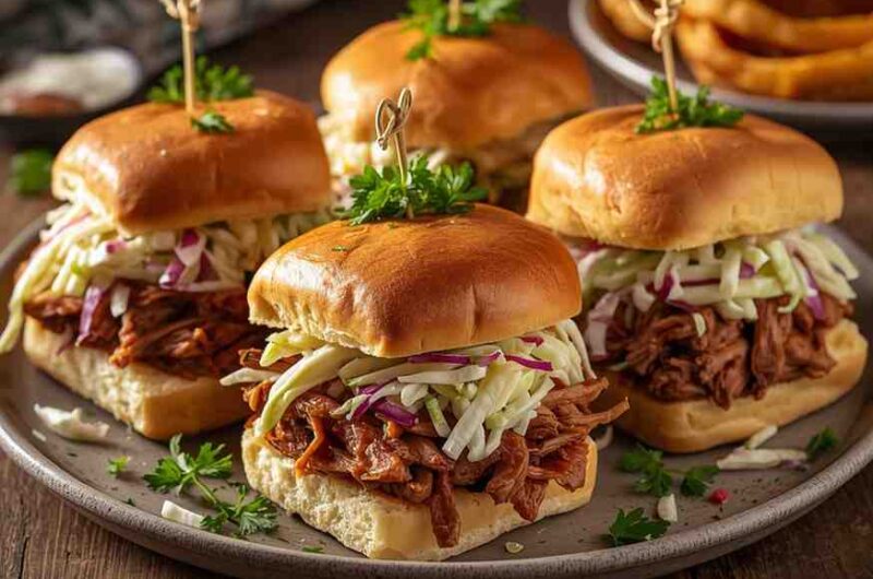 The coleslaw adds a light, tangy crunch that balances the savory richness of the pork. These sliders are easy to make ahead of time, fun to assemble, and perfect for sharing with family or guests. They deliver all the flavors of classic barbecue in a convenient, handheld format.