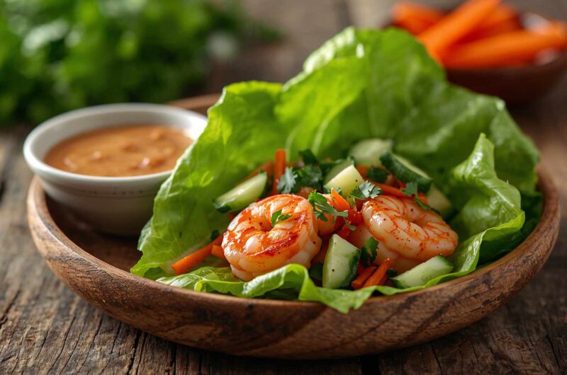 This recipe combines textures and flavors — crisp, fresh lettuce; succulent shrimp; crunchy vegetables; and a creamy, nutty sauce. Inspired by Asian-inspired lettuce wraps, it’s perfect for lunch, a light dinner, or as an appetizer at gatherings. The vibrant presentation, bold flavors, and minimal cooking make it a recipe that’s both elegant and easy.