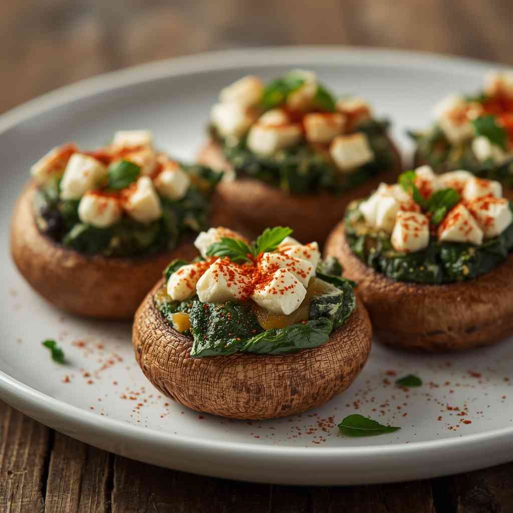 This recipe beautifully marries Mediterranean flavors with the umami richness of mushrooms. The natural juiciness of the mushrooms pairs perfectly with the salty creaminess of feta and the freshness of spinach. It’s a small dish that packs big flavor — ideal for entertaining or a cozy dinner night at home.