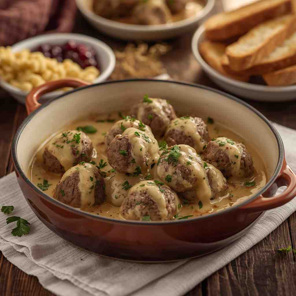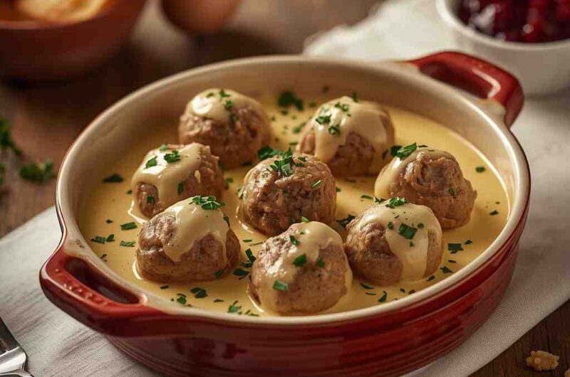 This recipe gives you the perfect balance: a soft, juicy meatball with hints of allspice and nutmeg, paired with a creamy, velvety sauce that coats every bite. It’s elegant enough for guests yet simple enough for a weeknight dinner.