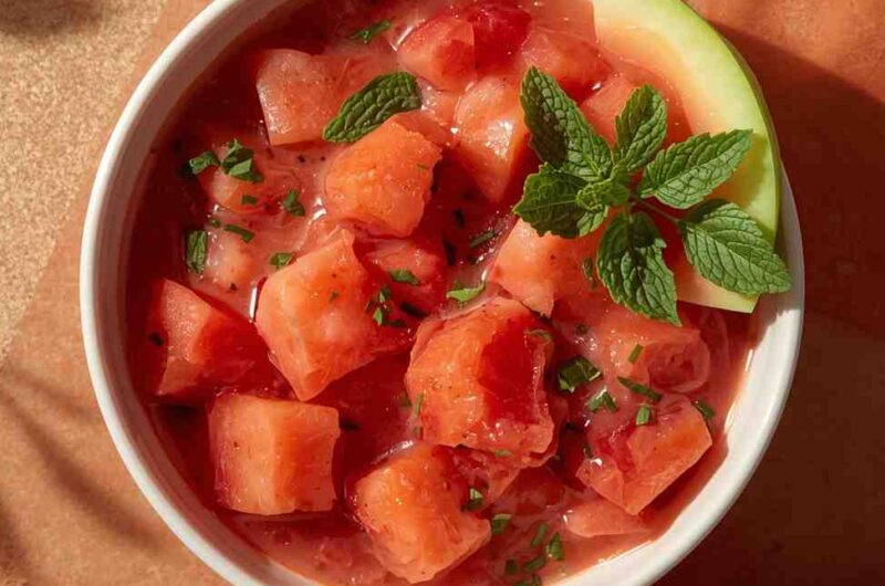Watermelon Gazpacho with Mint is a brilliant twist on the Spanish classic—light, sweet, hydrating, and energizing. Instead of only tomatoes as the base, this recipe adds juicy watermelon, which provides natural sweetness and a vibrant pink hue. Fresh mint brings a cooling herbal finish, making it the ultimate summer refresher.