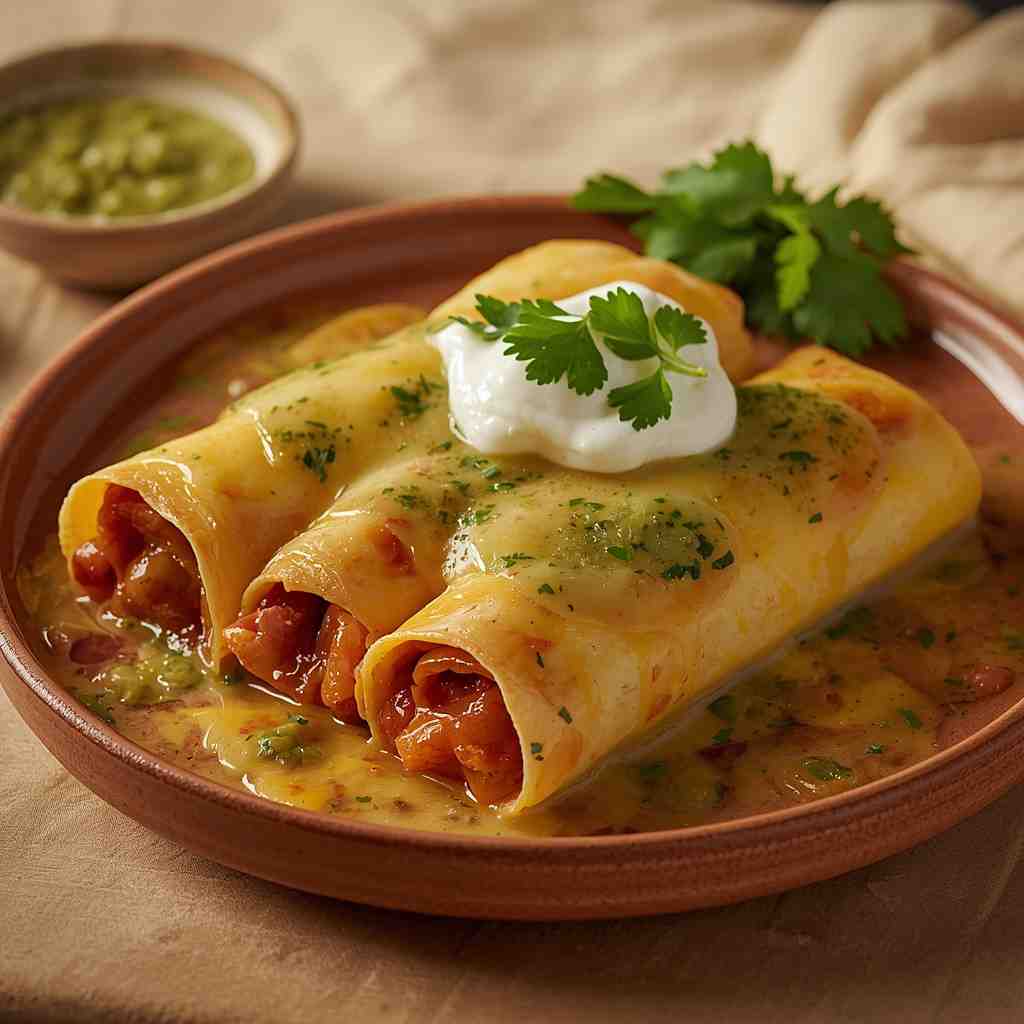 Breakfast Enchiladas with Cheese and Salsa Verde are a flavorful and satisfying way to start your day. Soft corn tortillas are rolled around creamy scrambled eggs, melted cheese, and optionally beans or sautéed vegetables, then smothered in tangy green salsa (salsa verde). Baked until bubbly and golden, these enchiladas deliver a perfect balance of textures and flavors — from the tender tortillas to the creamy cheese and the vibrant, zesty sauce.