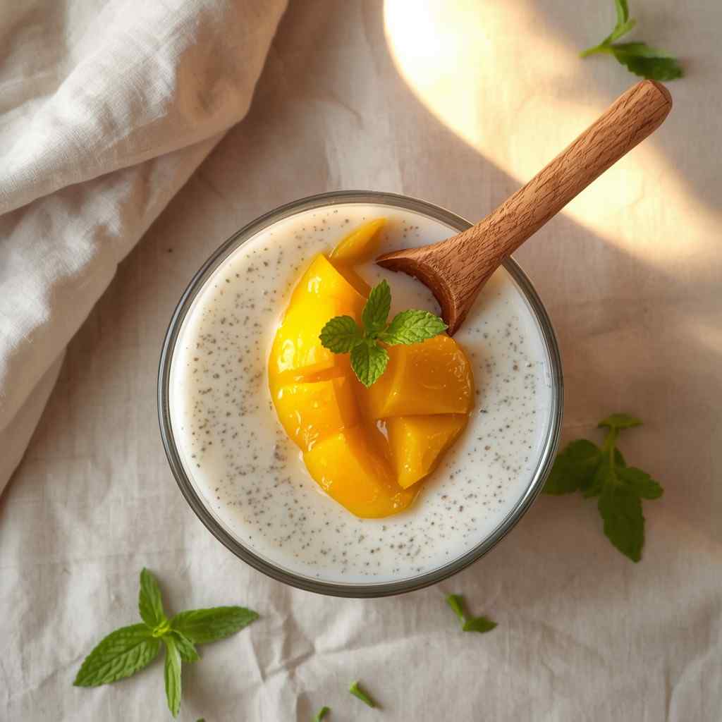 The coconut milk adds richness, the mango adds freshness, and the chia seeds create a unique, satisfying texture.