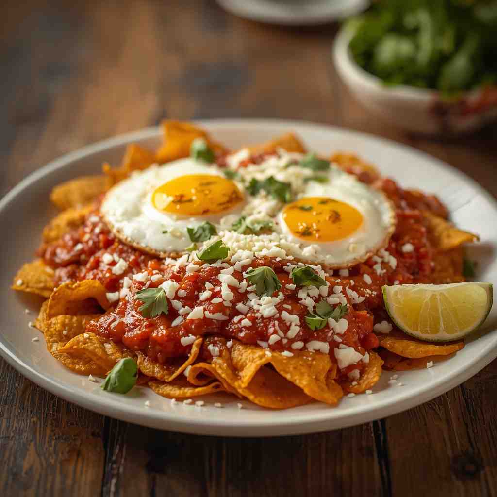 I love this recipe because it’s both indulgent and comforting. Each bite is a mix of crunchy, soft, spicy, and creamy — the tortilla chips soaked in sauce, the runny egg yolk, and the salty tang of cotija cheese create a perfect symphony of flavors.