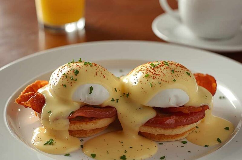 Classic Eggs Benedict with Hollandaise Sauce is a luxurious, elegant brunch dish that combines crisp toasted muffins, savory bacon, perfectly poached eggs, and rich, velvety Hollandaise. It’s both impressive and approachable, making it perfect for special occasions or indulgent weekends at home.
