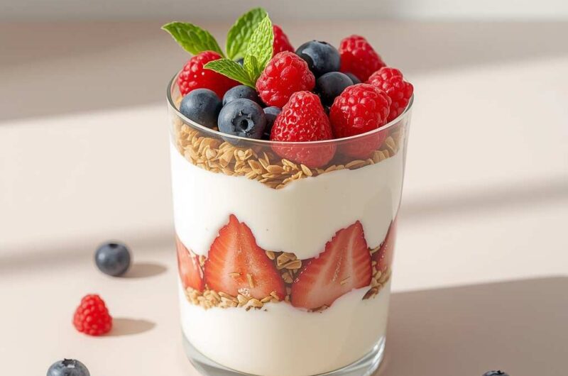 This parfait is a must-try because it’s healthy, simple, and satisfying. Greek yogurt provides protein and probiotics, granola adds fiber and crunch, and berries supply antioxidants and natural sweetness.