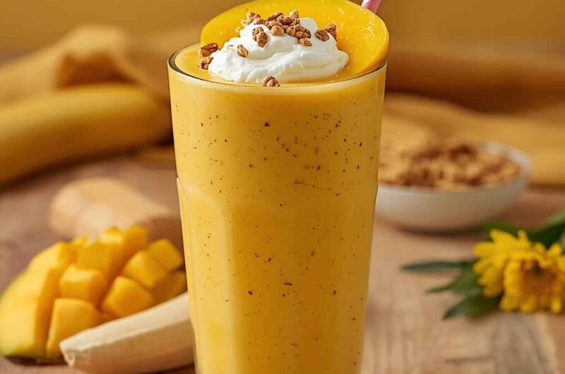 The Mango Banana Smoothie with Greek Yogurt is a creamy, tropical delight that blends the best of taste and nutrition. Bursting with natural sweetness, protein, and vitamins, it’s the perfect choice for a refreshing breakfast or energizing snack. The creamy texture from Greek yogurt pairs beautifully with the tropical notes of mango and the smoothness of banana, creating a wholesome drink that feels both indulgent and healthy. Quick, delicious, and endlessly customizable, this smoothie is your ticket to bright mornings and guilt-free satisfaction—all in one sunny, golden glass.