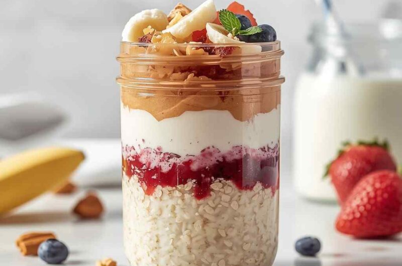Peanut Butter and Jelly Overnight Oats are a delicious, healthy twist on the classic childhood sandwich. Combining creamy peanut butter, sweet fruit preserves, and hearty oats, this breakfast is both nostalgic and nutritious.