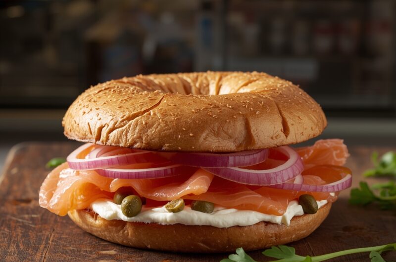 The Smoked Salmon and Cream Cheese Bagel Sandwich is a fresh, flavorful, and elegant brunch or breakfast option. Its combination of creamy cheese, smoky salmon, crisp vegetables, and warm toasted bagel makes it satisfying and visually appealing.