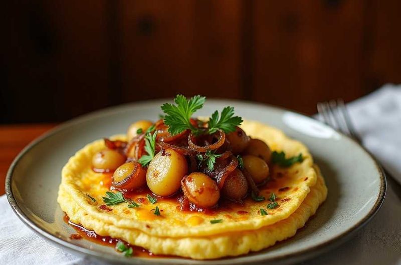 The Spanish Omelette with Potatoes and Onions, traditionally known as Tortilla Española, is one of Spain’s most iconic and beloved dishes. Simple in ingredients yet rich in flavor, this classic omelette showcases how humble pantry staples can be transformed into something truly special. Made with eggs, potatoes, onions, and olive oil, it reflects the heart of Spanish home cooking—unpretentious, comforting, and deeply satisfying.