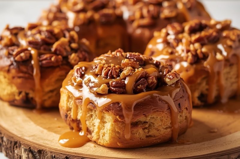 Sticky Pecan Buns with Caramel Sauce are the ultimate comfort bake — rich, sticky, nutty, and perfectly sweet. Each bite combines the buttery softness of the dough, the warmth of cinnamon, and the glossy decadence of homemade caramel.