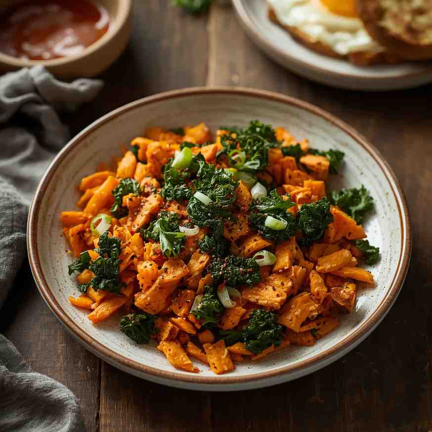 This dish is a must-try because it’s the perfect balance of health and comfort. Sweet potatoes provide complex carbohydrates and fiber, kale contributes iron and antioxidants, and optional eggs or cheese add protein and richness.