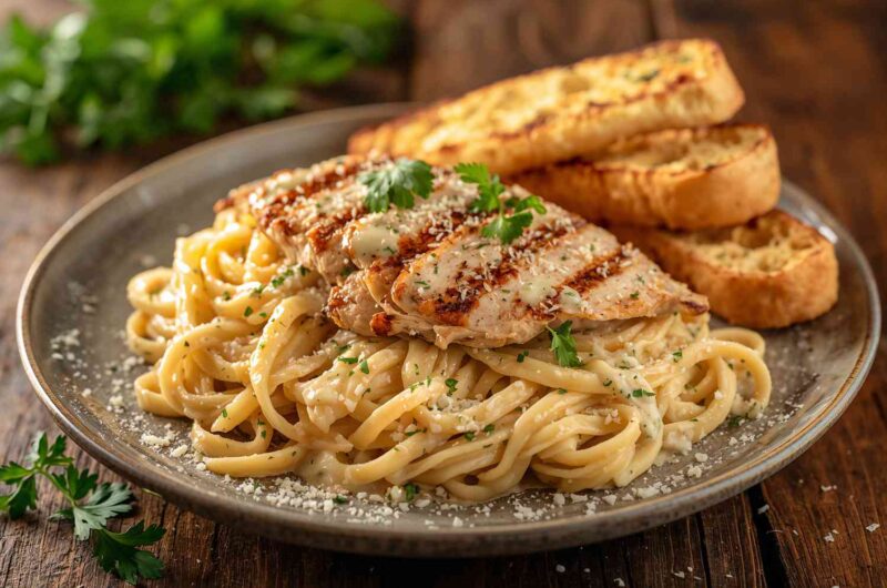 Chicken Alfredo Pasta with Garlic Breadsticks is the epitome of comfort food done right. This dish brings together tender, juicy chicken, rich and creamy Alfredo sauce, perfectly cooked fettuccine, and soft, buttery garlic breadsticks that are ideal for scooping up every last bit of sauce. It’s the kind of meal that instantly makes a house feel like home and brings family and friends together around the dinner table.