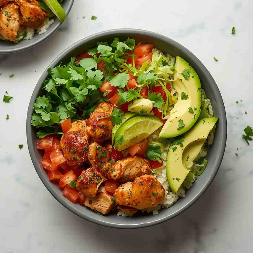 I love this recipe because it’s easy, fresh, and endlessly customizable. The chicken is marinated in a smoky, spicy blend of chili powder, paprika, cumin, and lime juice, giving it a flavor punch that pairs perfectly with the aromatic cilantro lime rice. Plus, you can build your bowl however you like — load it up with veggies, add beans for extra protein, or drizzle with creamy sauce for indulgence.