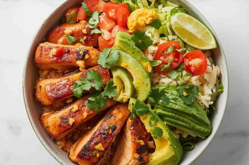 Spicy Chicken Burrito Bowls with Cilantro Lime Rice are the perfect balance of zesty, hearty, and customizable. This recipe brings the spirit of a burrito shop to your kitchen — smoky grilled chicken, fresh toppings, and tangy rice all layered in a satisfying bowl.