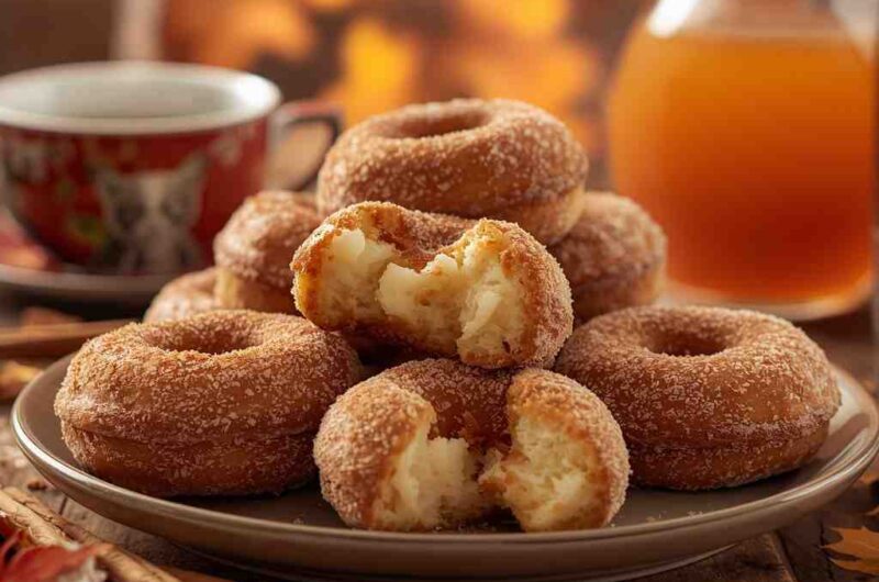 Apple Cider Donuts with Cinnamon Sugar are the taste of autumn captured in a soft, spiced, golden-brown treat. They’re the perfect blend of cozy flavors — apple, cinnamon, butter, and sugar — in every warm, fluffy bite.