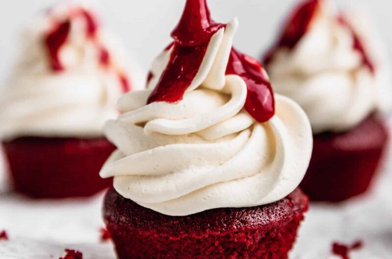 We love this recipe because it combines flavor, creativity, and festivity in every bite. The cupcakes are incredibly soft and moist, the slight cocoa undertone pairs beautifully with the rich cream cheese frosting, and the “blood” effect makes it a playful dessert that sparks conversation. It’s not just a cupcake—it’s a full experience.