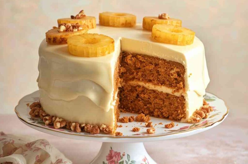 Carrot Cake with Pineapple and Cream Cheese Icing is a timeless dessert that combines moist, flavorful cake with a tangy and creamy frosting. The addition of crushed pineapple ensures a naturally sweet, moist texture, while shredded carrots bring a subtle earthiness and extra moisture. Often complemented by warm spices like cinnamon and nutmeg, this cake is comforting, indulgent, and perfect for any occasion.