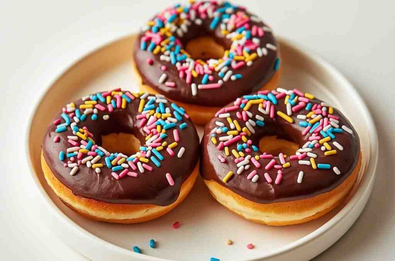 I adore this recipe because it combines everything I love about comfort baking — simplicity, joy, and indulgence. The donuts are soft and cakey, the chocolate frosting is rich and smooth, and the colorful sprinkles add a playful crunch. Unlike store-bought donuts, these are made with real ingredients and can be customized exactly to your taste.