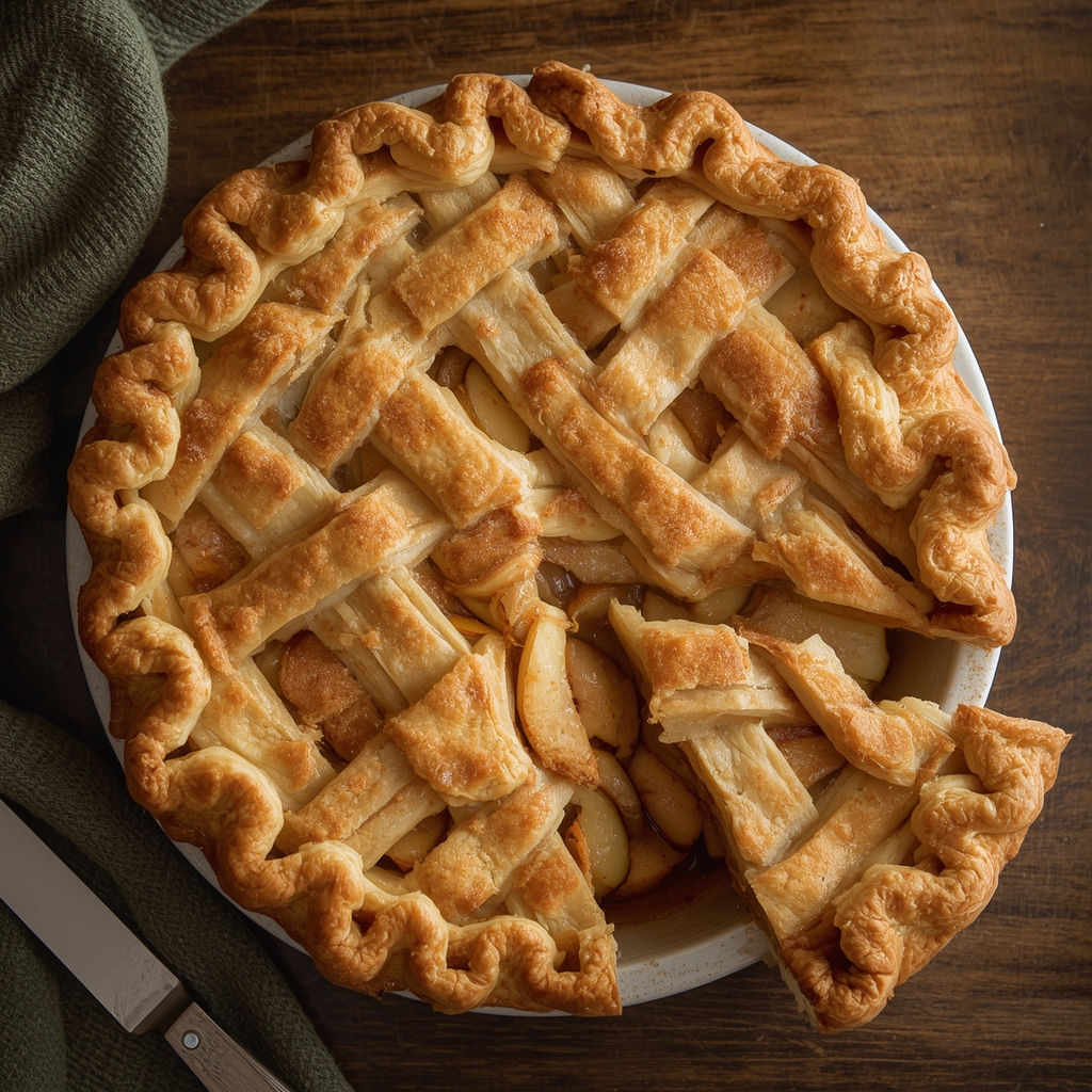 This pie features tender, juicy apples infused with cinnamon, nutmeg, and brown sugar, all encased in a perfectly buttery, crisp, and flaky pastry crust. Whether you serve it at a holiday table, Sunday family dinner, or casual gathering, this pie brings people together around the comforting flavors of home.
