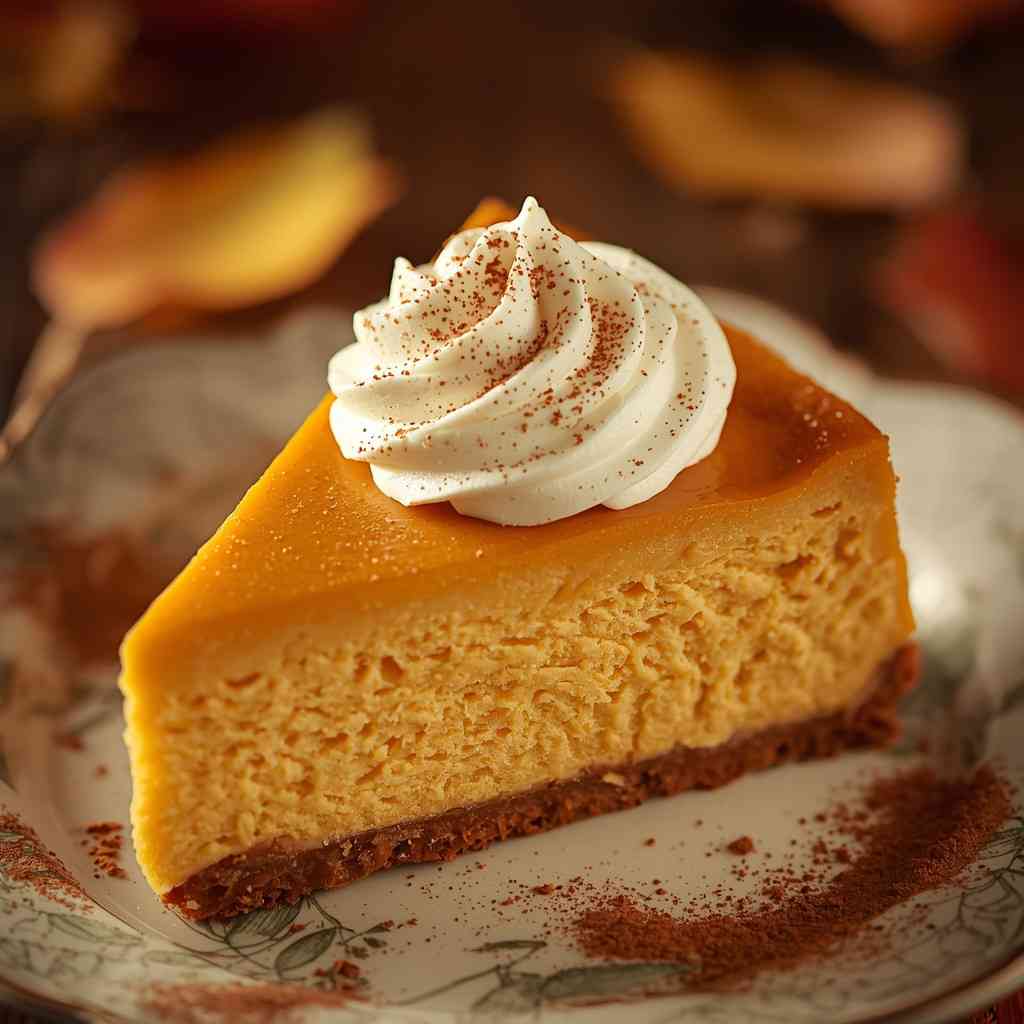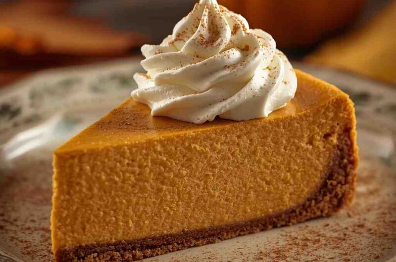 It combines the cozy warmth of pumpkin pie with the rich creaminess of classic cheesecake — a best-of-both-worlds experience.