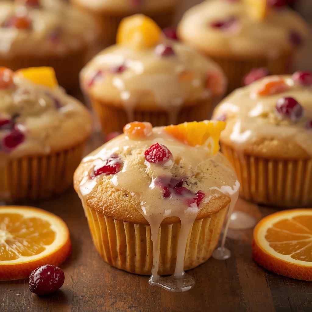 The combination of tart cranberries and sweet, fragrant orange creates a balanced flavor profile, and the glaze adds an extra layer of sweetness and elegance. These muffins are light, fluffy, and visually appealing, making them perfect for sharing with family and friends.