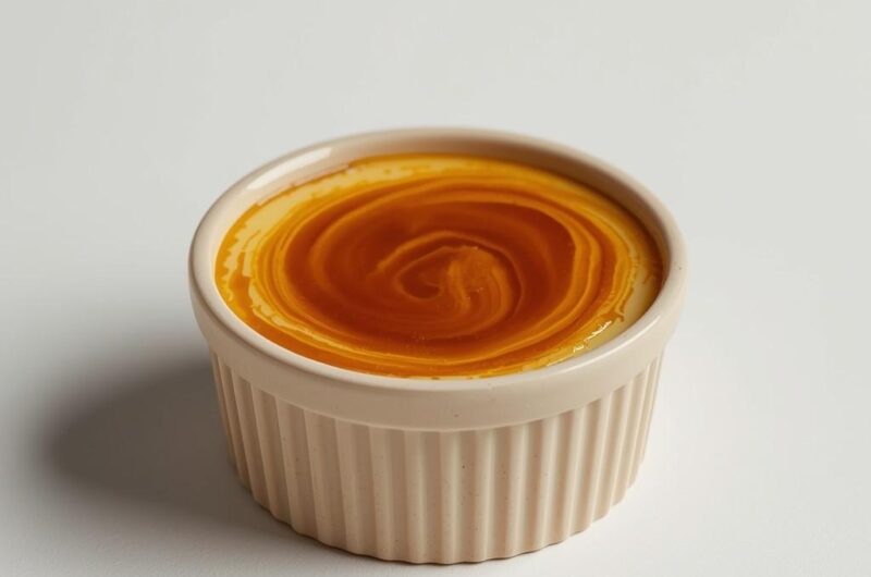 Strain the custard through a fine mesh sieve to remove bubbles or any egg solids. This is key to achieving a silky flan.