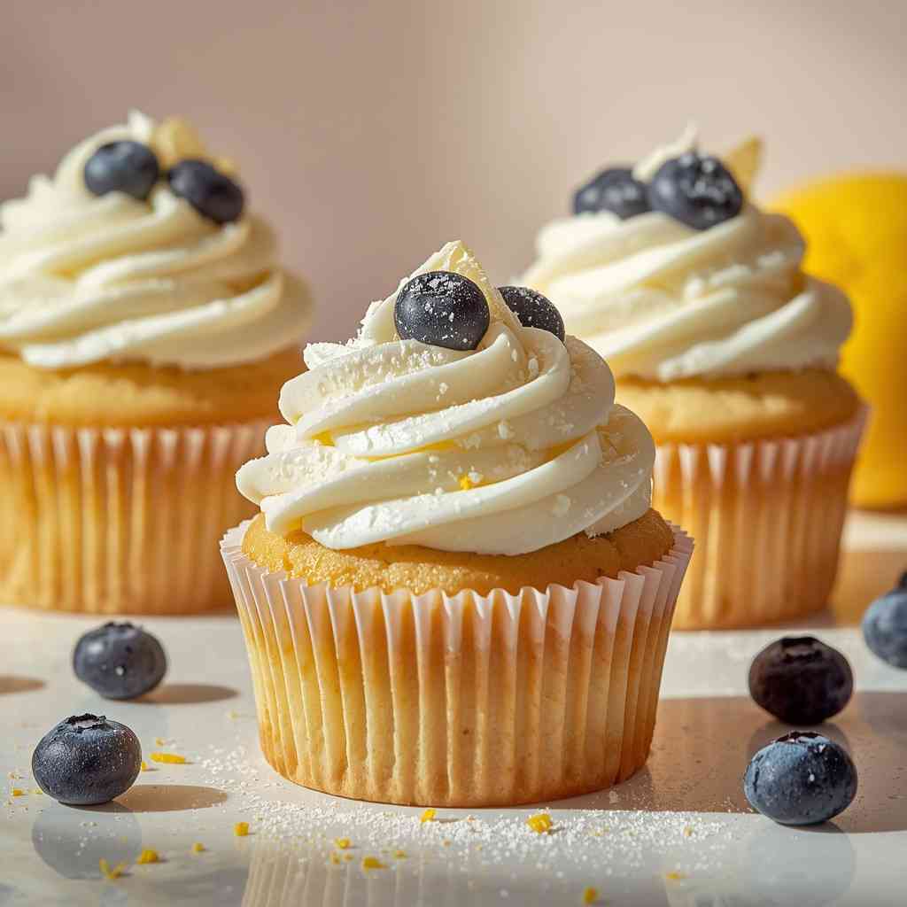 - Step 8: Frost and Decorate : Once cupcakes are completely cool, frost them using a piping bag with a star or round tip. Garnish with fresh blueberries, lemon zest curls, or a tiny lemon slice on top for a beautiful presentation.