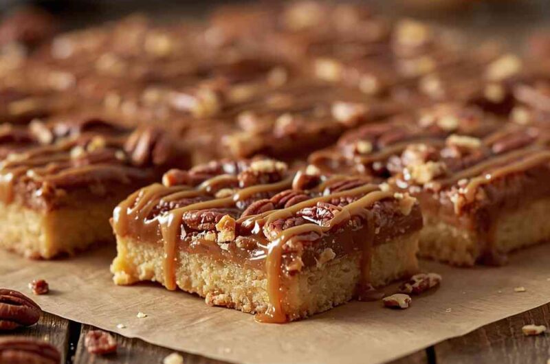 Imagine everything you love about classic pecan pie — the buttery crust, gooey caramelized pecan filling, and rich sweetness — transformed into perfectly portable, bite-sized dessert bars. These Pecan Pie Bars with Caramel Drizzle are a decadent twist on the Southern classic. With a buttery shortbread base, a chewy pecan filling, and a final drizzle of golden caramel, each square delivers pure dessert bliss. They’re ideal for holidays, bake sales, potlucks, or anytime you want a treat that feels special without the fuss of making an entire pie.