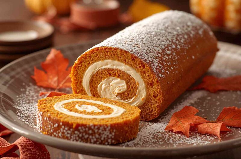 Pumpkin Roll Cake with Cream Cheese Filling is the epitome of a festive fall dessert. Moist, spiced pumpkin cake rolled with a rich cream cheese filling creates a perfect harmony of flavors. Its presentation wows guests, while its taste guarantees that it will become a yearly tradition in your home. Whether for Thanksgiving dinner or a cozy weekend dessert, this pumpkin roll is a must-bake treat that brings seasonal joy in every bite.