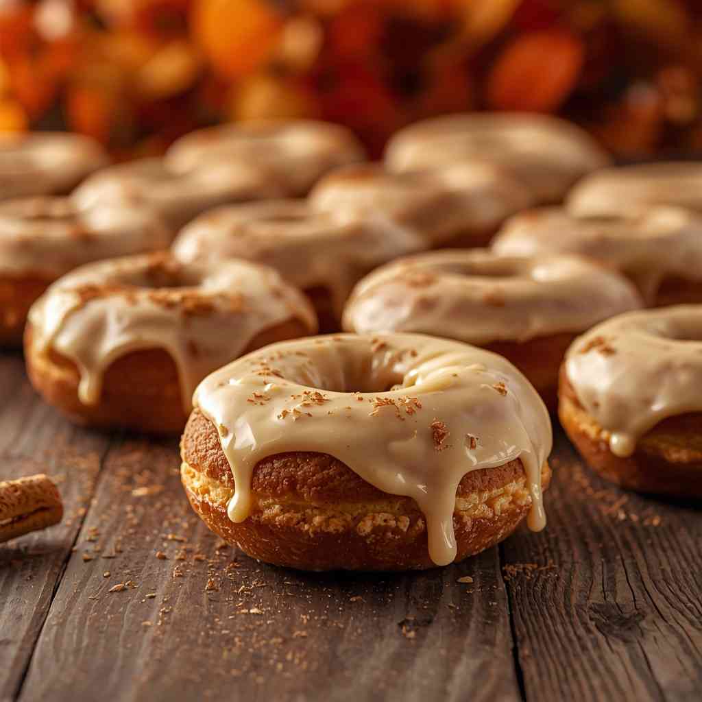 Serve donuts warm or at room temperature. They are perfect for breakfast, brunch, or as a dessert. Pair with a hot cup of coffee, tea, or spiced latte for a seasonal treat. For presentation, sprinkle additional cinnamon or pumpkin spice on top of the glaze.