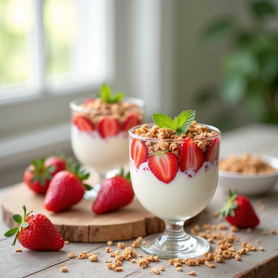 Serve strawberry yogurt parfaits chilled in individual glasses or bowls for an elegant presentation. Perfect for breakfast on-the-go, a healthy snack, or a light dessert. Pair with fresh fruit or a cup of tea for a complete treat.