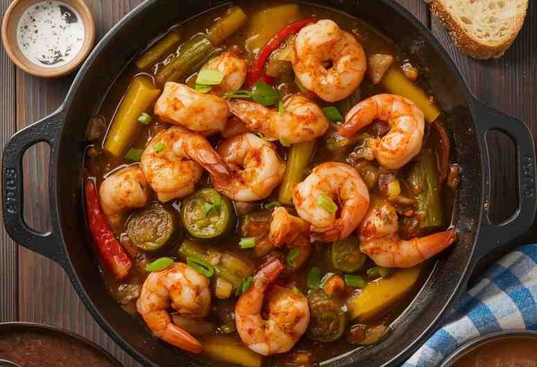 The roux (a mixture of flour and fat cooked until nutty and golden brown) adds richness and depth, while the “holy trinity” of Louisiana cooking — onion, celery, and bell pepper — infuses the dish with unmistakable southern charm. And when you add tender, juicy shrimp to the mix, the result is pure magic.