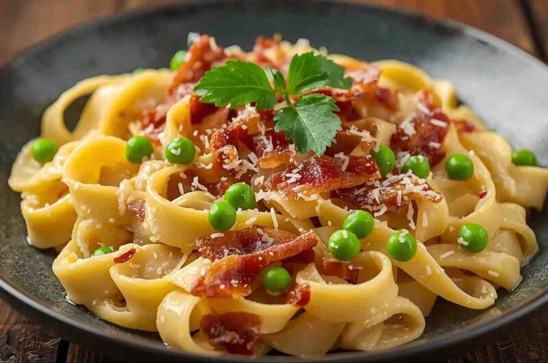 Whether you’re craving a cozy solo dinner or planning to impress your guests, this creamy bacon and pea pasta always delivers.