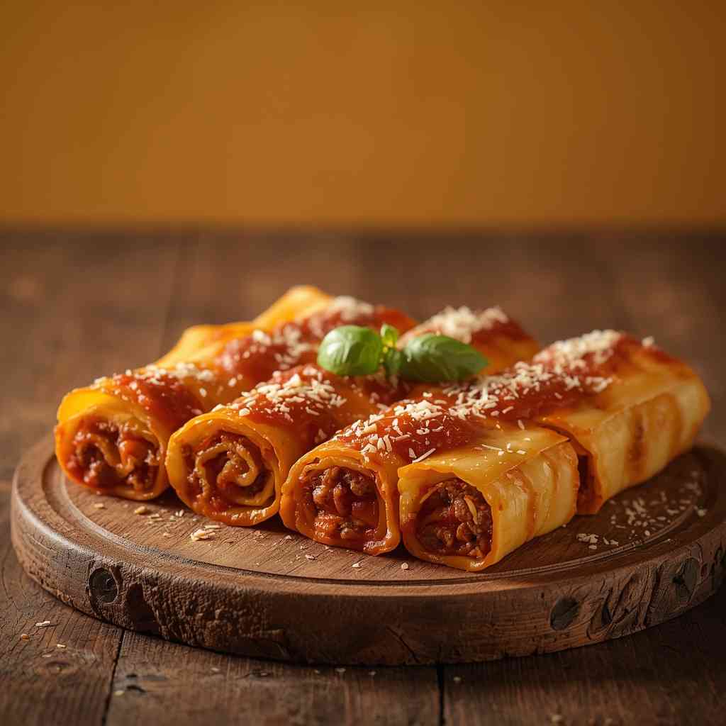 - Step 4: Assemble the Roll-Ups : Preheat your oven to 375°F (190°C). Spread about ½ cup of the meat sauce on the bottom of a greased 9×13-inch baking dish. Lay out one lasagna noodle at a time on a clean surface. Spread 2–3 tablespoons of the cheese mixture evenly over each noodle. Spoon a thin layer of meat sauce on top of the cheese. Carefully roll up the noodle from one end to the other. Place each roll seam-side down in the prepared baking dish.