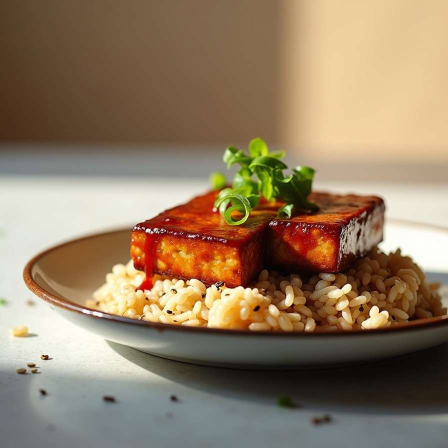 - Serve the teriyaki tofu over sesame rice and garnish as desired.
