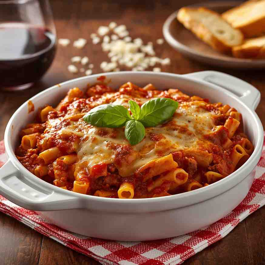 I absolutely love this recipe because it combines everything comforting about Italian cuisine into one dish — pasta, cheese, and sauce, all baked together into perfection. Unlike more complex layered dishes like lasagna, this baked ziti is forgiving, simple, and foolproof, yet just as satisfying.