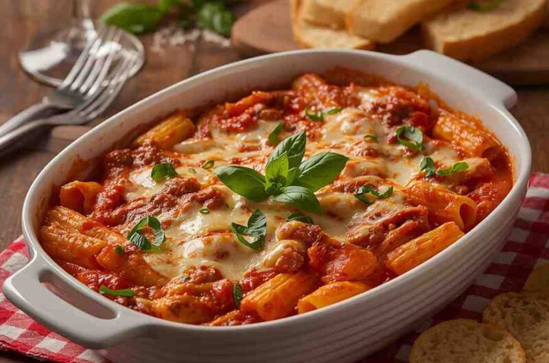 I absolutely love this recipe because it combines everything comforting about Italian cuisine into one dish — pasta, cheese, and sauce, all baked together into perfection. Unlike more complex layered dishes like lasagna, this baked ziti is forgiving, simple, and foolproof, yet just as satisfying.