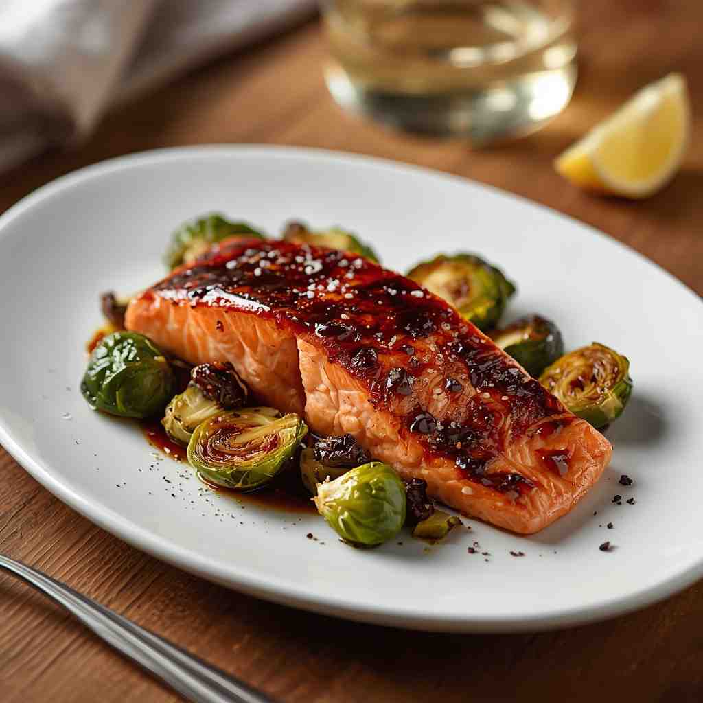 - Step 4: Glaze the Salmon : Brush the balsamic glaze over the salmon fillets just before serving. Optionally drizzle extra glaze over roasted Brussels sprouts for added flavor.
