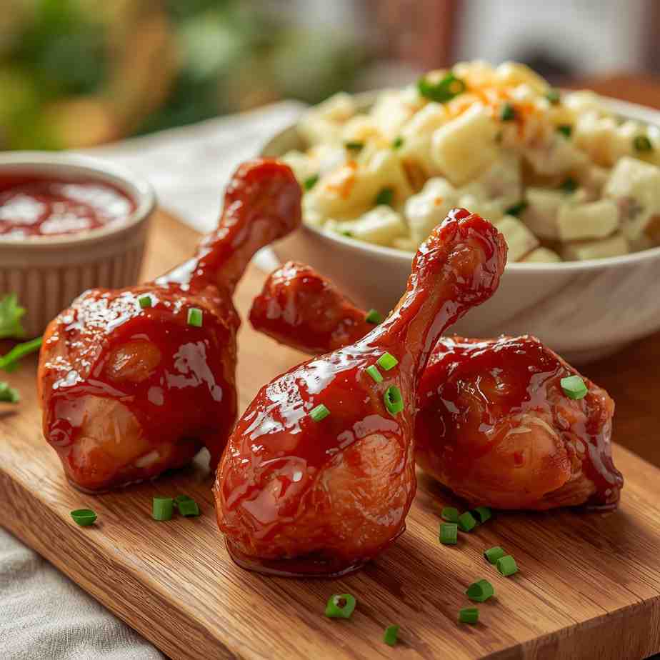 This dish is a must-try because it captures the essence of comfort and celebration in one meal. The smoky-sweet glaze on the drumsticks paired with the creamy potato salad hits every craving — savory, sweet, tangy, and hearty.