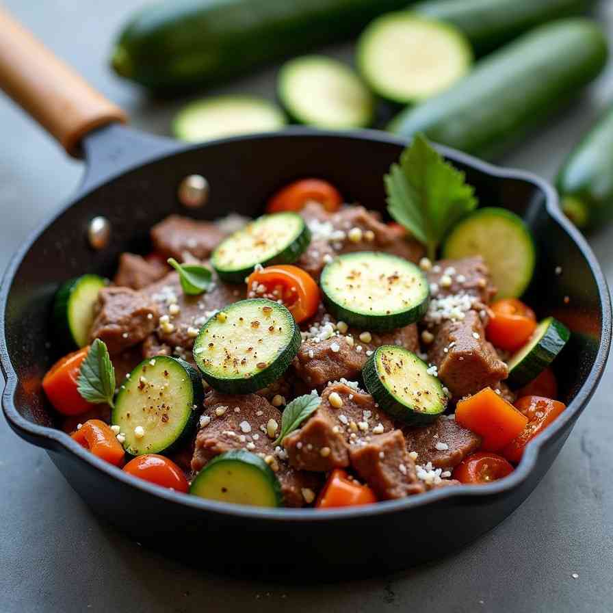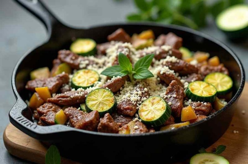 Cook the beef until browned and flavorful, sauté the zucchini until tender, then finish with Parmesan for a rich, savory skillet meal.
