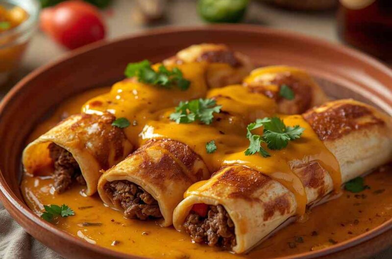 I love this recipe because it transforms simple ingredients into a showstopping dish packed with bold Tex-Mex flavors. The beef filling is hearty and perfectly seasoned, the tortillas fry up beautifully crisp, and the queso sauce adds irresistible creaminess.